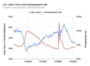 Here’s an updated look at labor churn alongside the unemployment rate:
